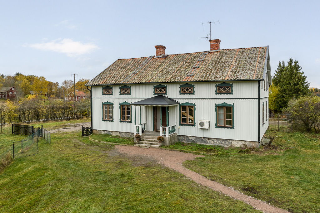 Stor hästgård med många möjligheter. Två bostadshus, nytt stall och stor markareal om 19 ha varav 12 ha skog gör att gården kan passa både som generationsboende eller för verksamhet m.m. Bostadshuset från 1854 om ca 230 kvm har stora rum i fil, högt i tak, kakelugnar, vedspis och vackra massiva trägolv. Mangårdsbyggnaden ramas in