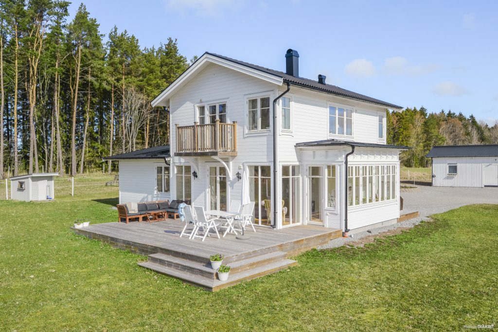 Välkommen till den vita drömgården, en mycket fin och nybyggd hästgård. Här finns ett hus på 135 kvm med mycket hög standard och med en vacker glasveranda, ett gästhus på 45 kvm som även det har en hög standard och ett sidobyggnad som inrymmer ett stall med tre stora boxar, en lösdrift för 6 hästar och ett stort garage. I stalldelen finns en stor och uppvärmd sadelkammare med tvättmaskin och i garagedelen finns ett större uppvärmt förråd. Väldränerad och upplyst ridbana på ca 30 x 60 m, upplyst gräsbana på ca 40 x 100 m och fina hagar runt gården. Här är gården för dig  som vill leva din dröm med hästarna. Gården är mycket praktisk och genomtänkt in i minsta detalj vilket gör den lättskött och enkel. Möjlighet finns att hyra ut gästhuset om så önskas.